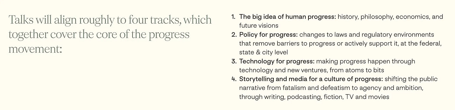 [t]he Progress Conference was filled with an atmosphere of optimism and ingenuity that is sorely lacking in most places. Human flourishing is ultimately measured not just by material comfort or technological advancement but by psychological well-being and a sense of purpose. It is inspiring to be surrounded by people who believe in progress and want to do their part in contributing to the betterment of our society and our species. How much better would life be if we all did that?