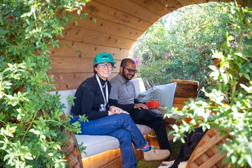 Venue choice. We chose Lighthaven for many reasons, but mainly because it is such a great setting for serendipitous and planned encounters. Even the bugs are features: there’s only one large outdoor space that fits several hundred people. So most sessions are smaller (20-80 people). This means that outside of a few plenary talks, a large share of attendees are by necessity in the Garden Track, just meeting and talking and going deeper on the many topics explored in the sessions. Plus, it’s much more energizing (goal #4!) to talk outside in the fresh air, on couches by fire pits or in whimsical gazebos, than in fluorescent-lit conference rooms or even formal sit-down restaurants.